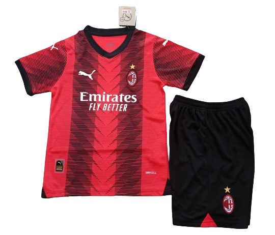 "Embrace the iconic red and black stripes with the AC Milan 23/24 Youth Home Kit. Designed for the young Rossoneri fan, this kit blends tradition with a modern touch. Crafted for comfort and style, it's perfect for cheering on your favorite team or playing on the field. The AC Milan Youth Home Kit is a symbol of pride, showcasing your dedication to one of Italy's most storied clubs. Elevate your football spirit with the 23/24 Youth Home Kit – where passion meets fashion, and the legacy lives on."
