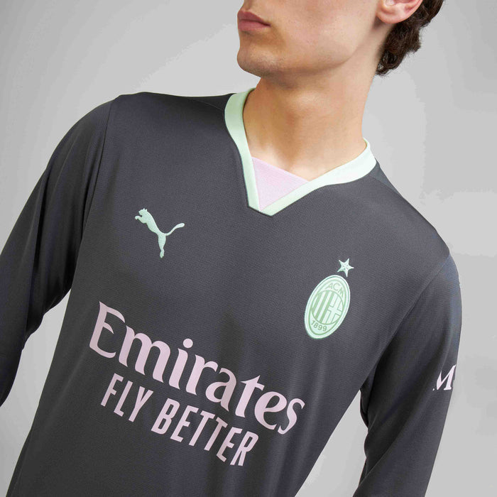 The AC Milan third 24/25 jersey is a stylish and unique addition to the team's kit collection. Featuring a bold design in a striking color palette, this jersey is sure to stand out on the pitch. Made from high-performance, moisture-wicking fabric, this jersey is both comfortable and functional. Complete with the club's crest and sponsor logos, this jersey is a must-have for any AC Milan fan looking to add a modern twist to their collection.
