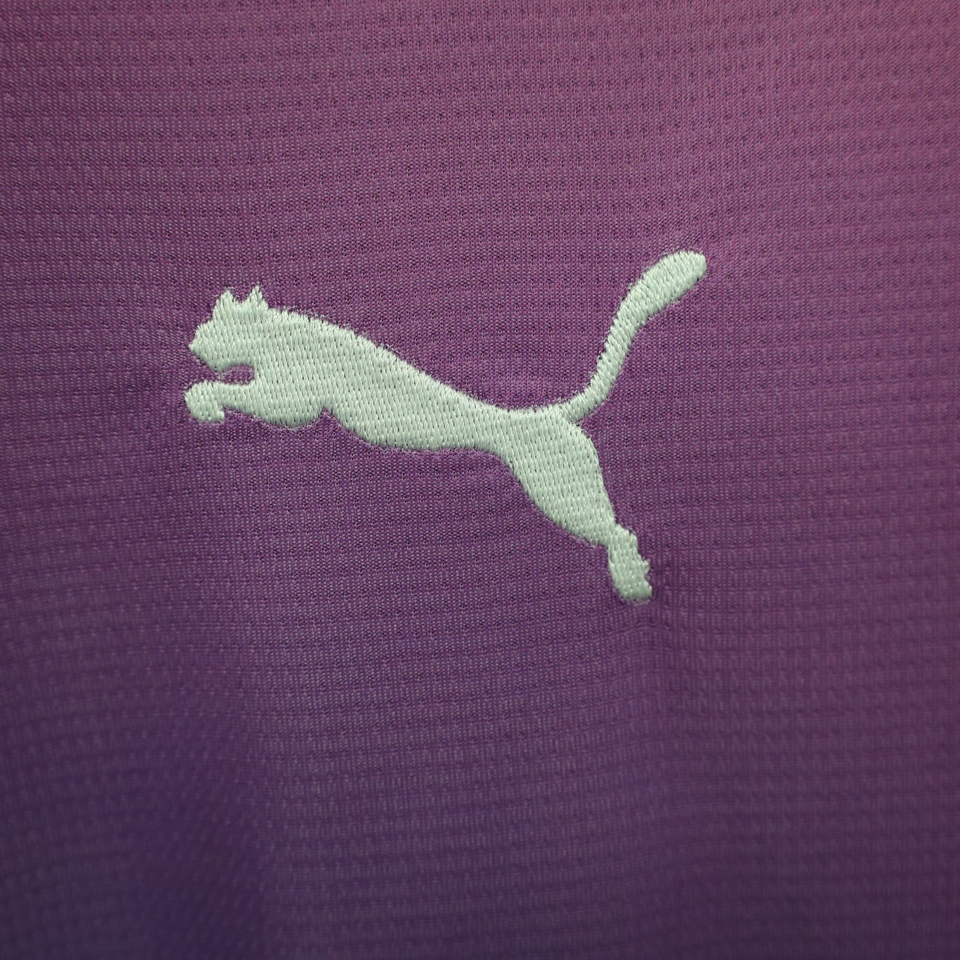 Dominated by a deep and electrifying shade, the third jersey boasts a bold departure from the traditional red and black palette, making a powerful statement on the pitch. The jersey's design incorporates subtle, intricate patterns that add a layer of sophistication to the overall aesthetic.