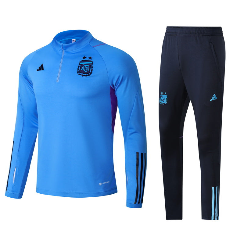 The Argentina 22/23 tracksuit epitomizes the passion and pride of La Albiceleste's footballing tradition. Featuring the iconic sky blue and white colors of the national team, adorned with the Argentine Football Association emblem, it showcases a blend of heritage and modernity. Crafted from high-quality materials, it ensures comfort and mobility, ideal for training or leisure. This tracksuit symbolizes Argentina's storied history in world football and their relentless pursuit of glory, reflecting the unwavering support of fans worldwide.