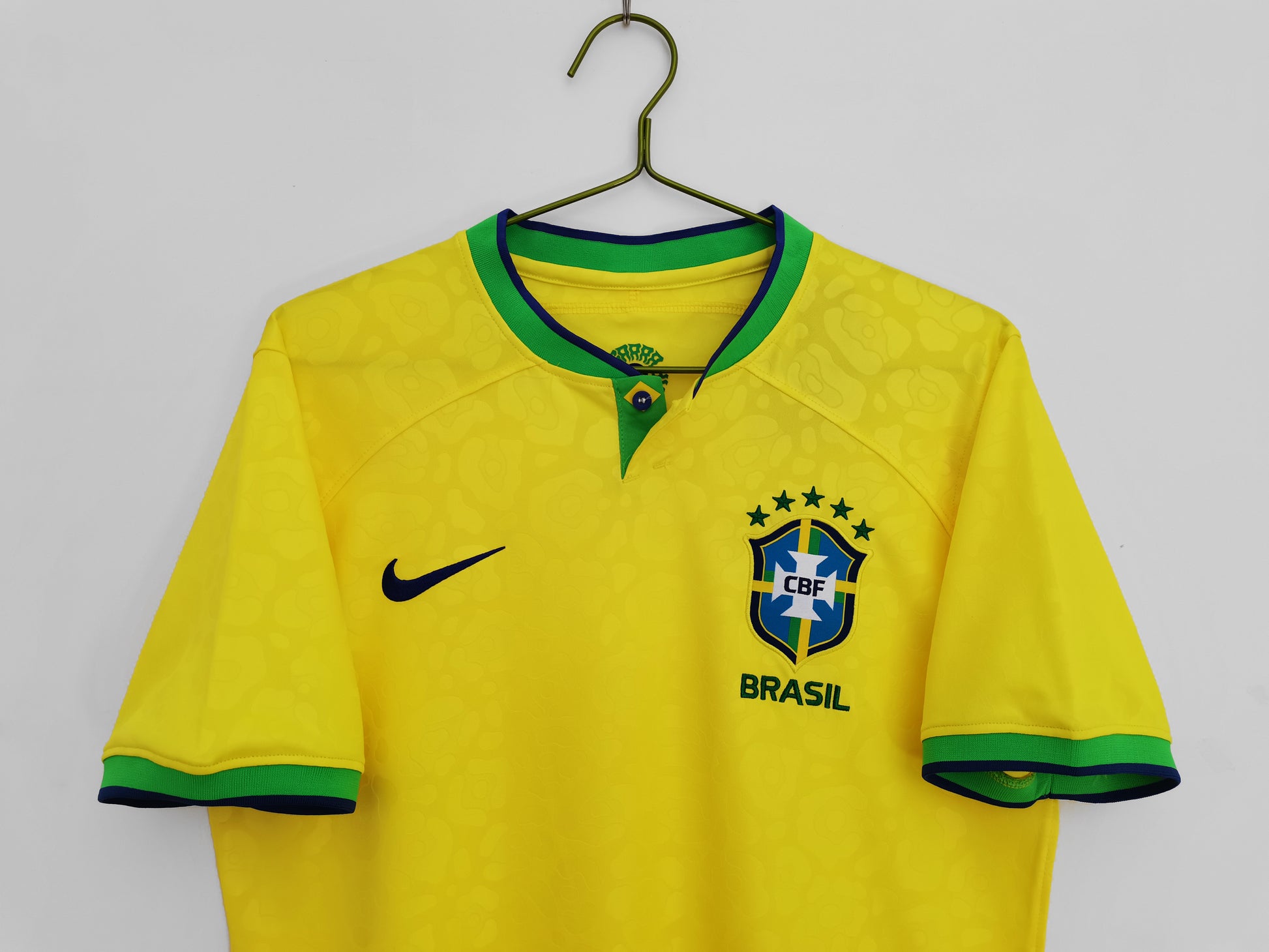 The Brazil 22/23 Home Jersey exudes the vibrant spirit of football in the heart of South America. Crafted with meticulous attention to detail, the jersey features the iconic canary yellow base, symbolizing Brazil's rich football history and passion. The traditional green accents, reminiscent of the country's lush landscapes, complement the design, creating a visually striking and harmonious look. The jersey is not just a piece of sportswear but a symbol of national pride, with the distinctive Brazilian Football Confederation crest proudly displayed on the chest. Engineered with advanced fabric technology, the jersey ensures optimal comfort and performance, making it the perfect attire for fans to cheer on their team or for players to showcase their skills on the pitch. Whether in the stadium or the streets, the Brazil 22/23 Home Jersey captures the essence of the beautiful game and celebrates the legacy of Brazilian football.