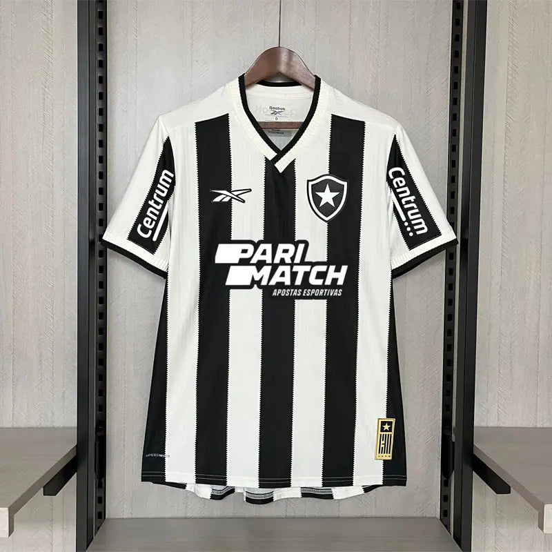 The Camisa Botafogo Home 23/24 is a stylish and sporty jersey that showcases the iconic black and white striped design of the Botafogo Football Club. Crafted from lightweight, breathable fabric, it ensures optimal comfort and performance on and off the pitch. The shirt features the club's emblem proudly displayed on the chest, along with modern detailing and a tailored fit for a sleek silhouette. Perfect for fans and players alike, this jersey embodies the spirit and heritage of Botafogo, making it a must-have for any supporter.