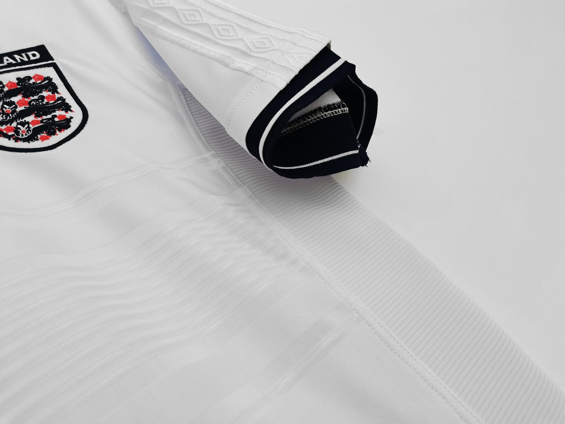 The England 1999/2001 away jersey featured a distinctive design with a navy blue color scheme. It likely incorporated unique design elements characteristic of the late 1990s and early 2000s, adding modern touches such as patterns or subtle textures. The England national team crest was prominently displayed on the left side of the chest, symbolizing national pride. The jersey also featured the logo of the kit manufacturer, with specific details depending on the official supplier for that period. The kit was likely produced by a major sportswear brand, and their logo would have been visible on the jersey, typically positioned on the right side of the chest or elsewhere. For an accurate representation and specific details about the England 1999/2001 away jersey, refer to historical images, archives, or official football memorabilia sources.
