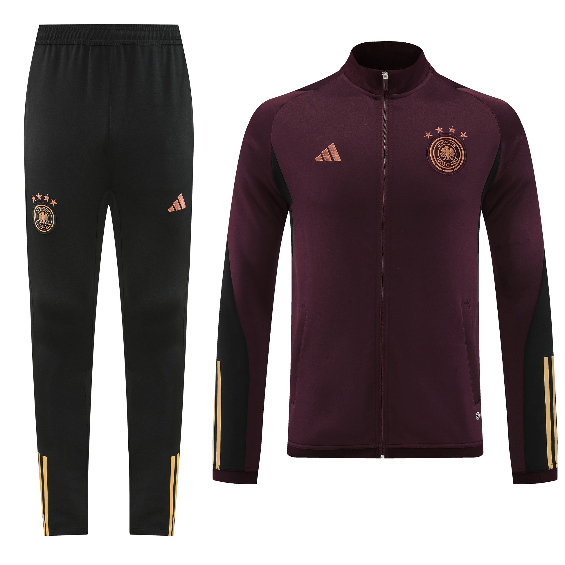 The Germany 22/23 Tracksuit embodies the precision and excellence synonymous with German football. With its classic design and iconic colors, this tracksuit represents the nation's rich footballing heritage and unwavering commitment to success. Adorned with the esteemed German Football Federation crest, it proudly symbolizes the team's storied history and unparalleled achievements on the international stage. Crafted from premium materials, this tracksuit offers optimal comfort and durability, ensuring you look and feel your best whether you're training or showing your support from the sidelines. Whether you're on the field or off, the Germany 22/23 Tracksuit is a symbol of your steadfast dedication to Die Mannschaft.