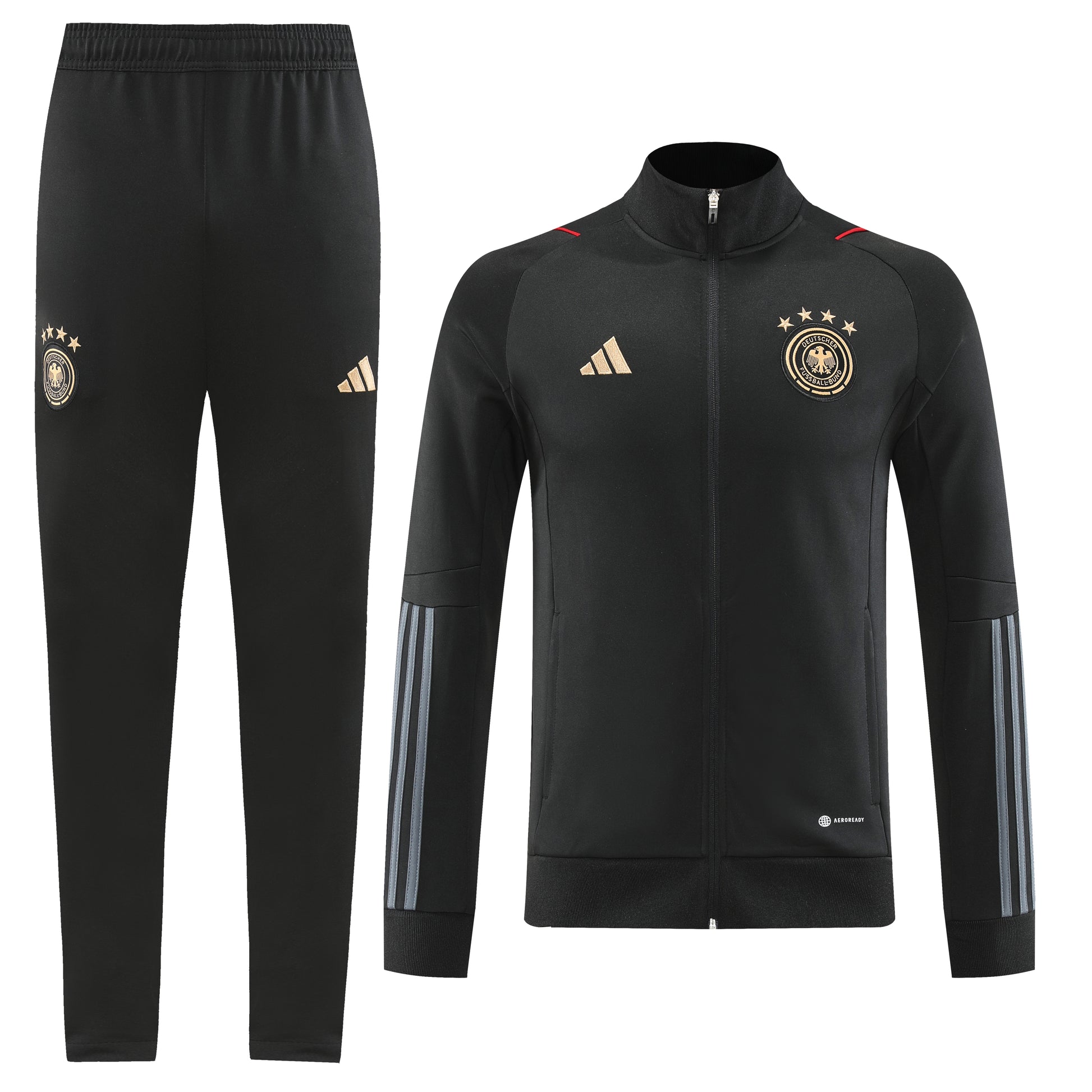 The Germany 22/23 Tracksuit embodies the precision and excellence synonymous with German football. With its classic design and iconic colors, this tracksuit represents the nation's rich footballing heritage and unwavering commitment to success. Adorned with the esteemed German Football Federation crest, it proudly symbolizes the team's storied history and unparalleled achievements on the international stage. Crafted from premium materials, this tracksuit offers optimal comfort and durability, ensuring you look and feel your best whether you're training or showing your support from the sidelines. Whether you're on the field or off, the Germany 22/23 Tracksuit is a symbol of your steadfast dedication to Die Mannschaft.