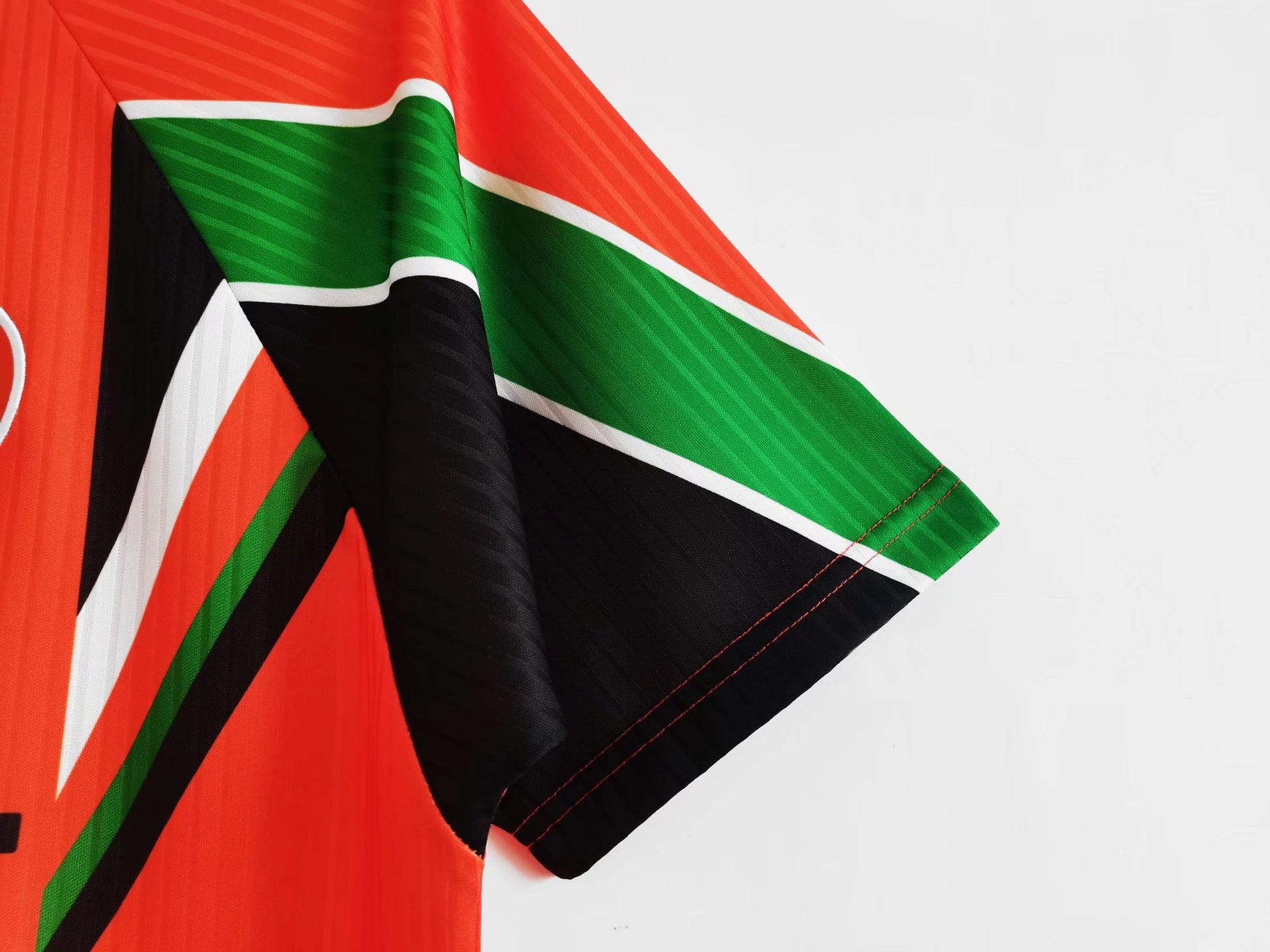 The Ireland 1997/98 away jersey likely featured a design emblematic of the football fashion prevalent during that period. The primary color of the jersey might have differed from the traditional green associated with Ireland's home kits. The design probably incorporated unique elements, possibly patterns or details reflective of the stylistic trends of the late 1990s. The Ireland national team crest, symbolizing national pride, would have been prominently displayed on the left side of the chest. Additionally, the jersey would have featured the logo of the kit manufacturer, typically positioned on the right side of the chest or elsewhere.
