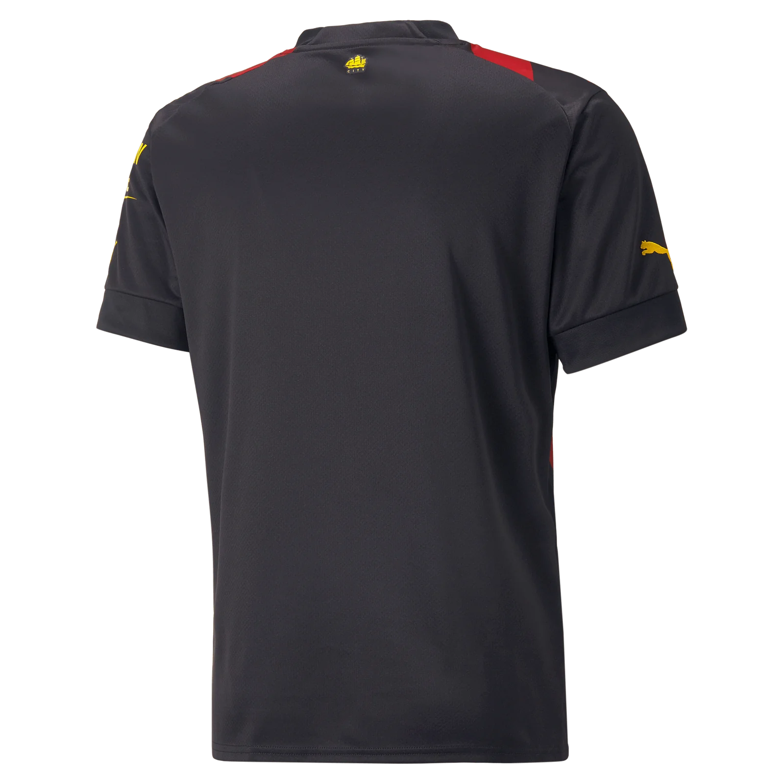 The Manchester City away kit for the 2022/2023 season introduces a fresh and distinctive look that departs from the traditional sky blue palette. With a design that exudes modernity and flair, the away kit features a unique color scheme, bringing a vibrant and eye-catching element to the forefront. The jersey incorporates contemporary elements, such as a stylish collar and sleek detailing, showcasing Manchester City's commitment to both innovation and style. Crafted with cutting-edge materials for optimal performance on the pitch, the away kit not only represents the club's dedication to excellence but also adds a fashionable edge to the players' attire. Embodying the spirit of Manchester City's dynamic and forward-thinking approach, the 22/23 away kit is sure to captivate fans and make a bold statement on the football stage.