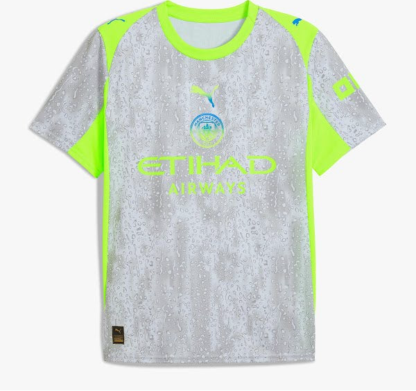 The Manchester City 25/26 Third Jersey features a bold design that blends modern aesthetics with the club's rich heritage. This vibrant jersey showcases a striking color palette, complemented by unique graphic elements inspired by the city’s culture. Made from lightweight, breathable fabric, it ensures optimal comfort during play. The club crest proudly adorns the chest, showcasing team pride, while the ergonomic fit allows for maximum mobility. Ideal for fans and players alike, this jersey is both stylish and functional, making a statement on and off the pitch.
