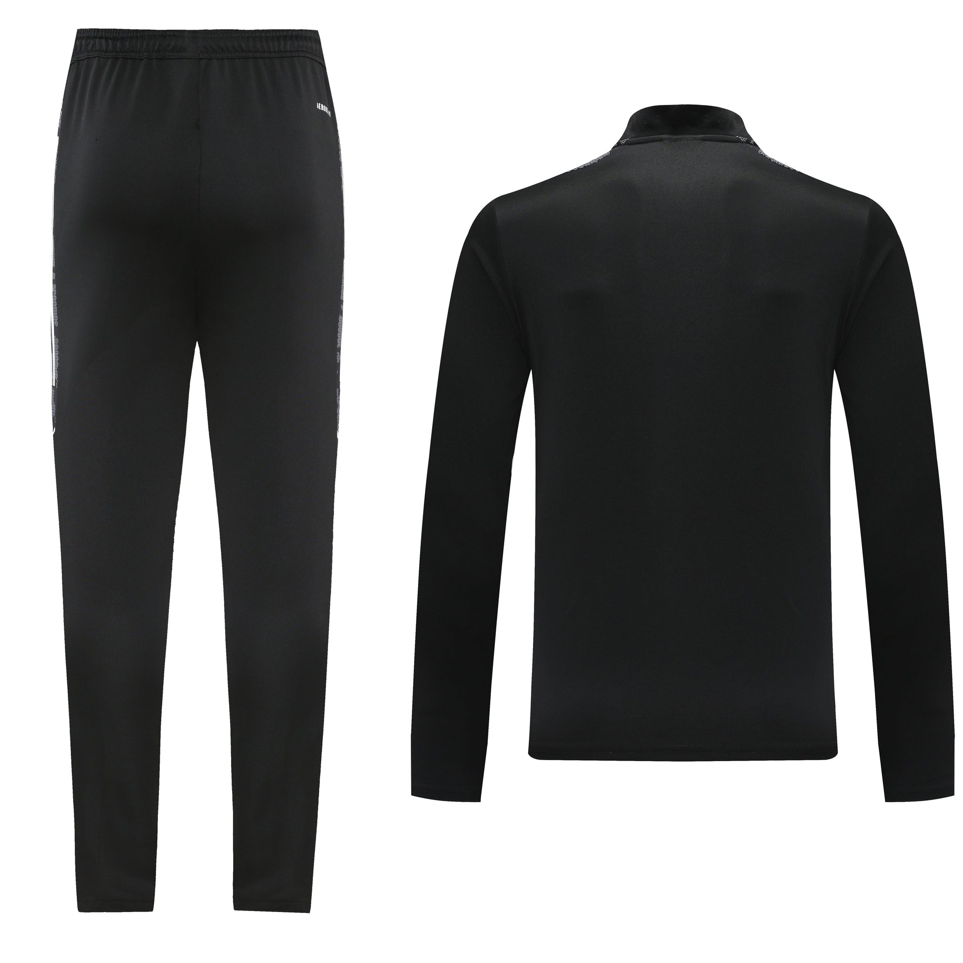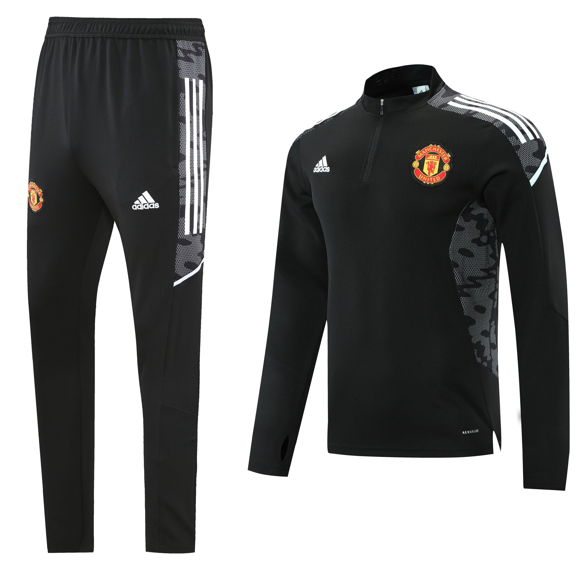 The Manchester United 21/22 black tracksuit epitomizes sleekness and versatility, tailored for both comfort and performance. Featuring a minimalist design in classic black, it exudes understated elegance. Crafted from high-quality materials, the tracksuit offers durability and flexibility, ideal for training sessions or casual wear. Adorned with subtle accents of the club crest and adidas logo, it proudly represents Manchester United's rich heritage and contemporary style. Perfect for fans looking to express their allegiance with a touch of sophistication and comfort.