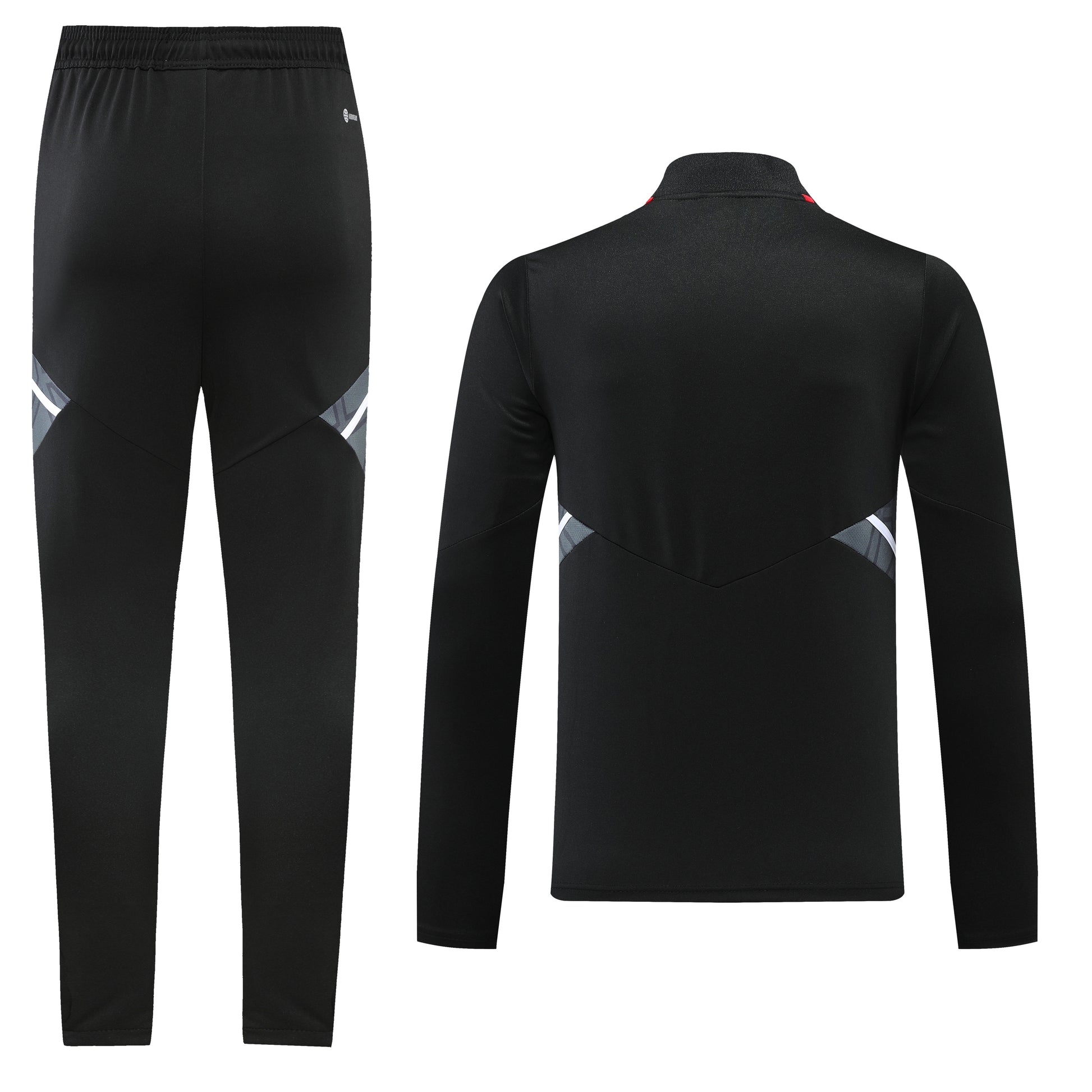 The Man United 22/23 black tracksuit blends sleek design with high-performance functionality, tailored for both comfort and style. Crafted from premium materials, it ensures optimal mobility, making it suitable for training sessions and casual wear alike. Adorned with the iconic Man United crest and subtle branding, this tracksuit embodies the club's rich history and enduring legacy. Perfect for fans and athletes who value both fashion-forward attire and the pride of supporting Manchester United.