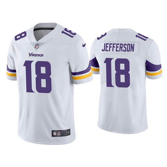 The Minnesota Vikings 2023 Away White Jersey features a clean, crisp white design with bold purple and gold accents, representing the team’s iconic color scheme. The jersey showcases the classic Vikings logo on the chest and is crafted with performance fabric to ensure comfort and breathability throughout the game. Ideal for fans who want to sport the Vikings' signature look on the road, this jersey combines tradition with modern athletic style.