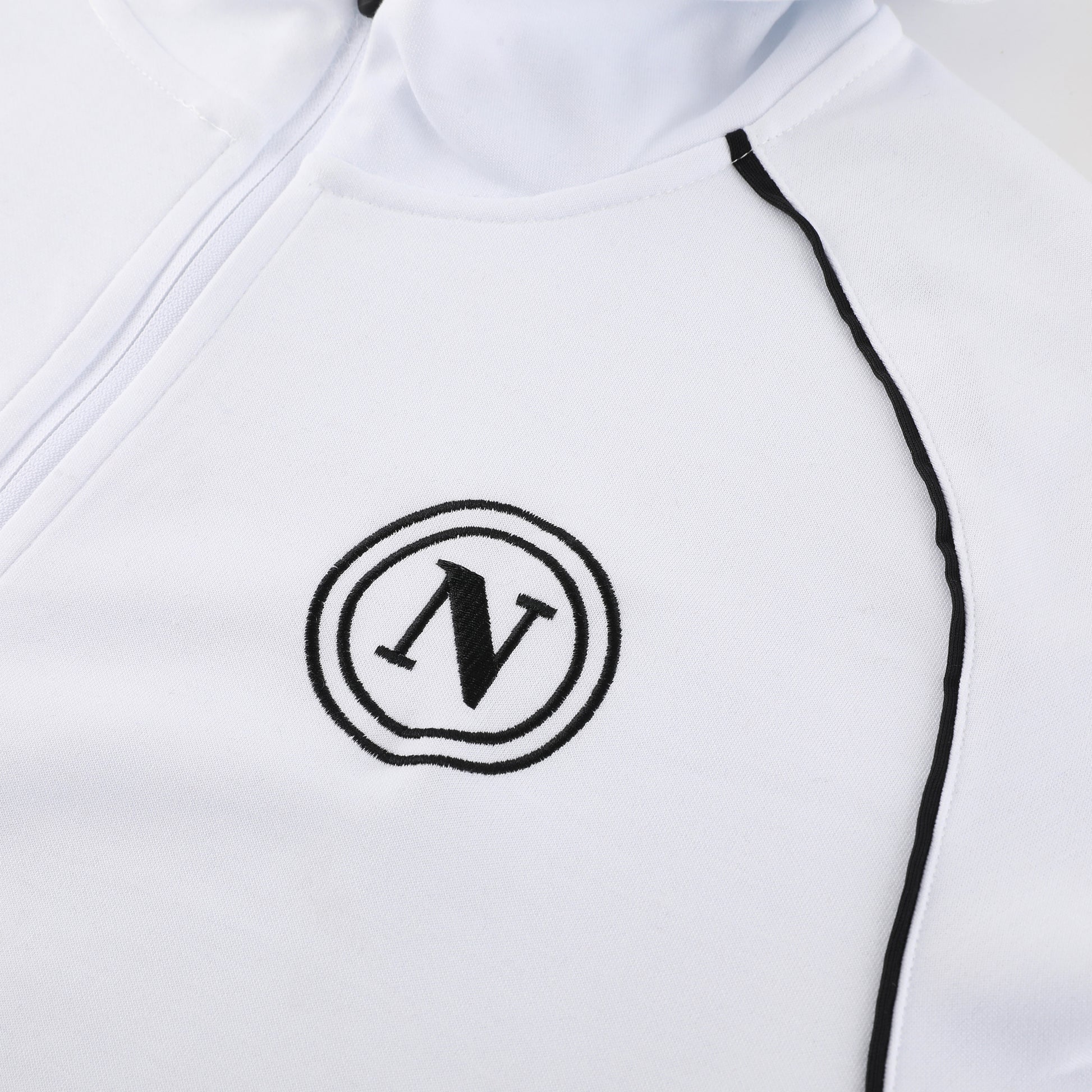 Napoli 23/24 white football tracksuit: Radiating with elegance and precision, the Napoli 23/24 white tracksuit embodies the essence of Italian flair and footballing finesse. Inspired by the vibrant energy of Naples, these tracksuits feature clean lines and subtle accents, exuding sophistication on and off the pitch. Adorned with the iconic club crest, they represent a fusion of style and performance, allowing players to train with confidence and grace. Whether preparing for match day or showcasing team pride, the Napoli 23/24 white tracksuit is a testament to the club's dedication to excellence and its timeless allure in the footballing world.