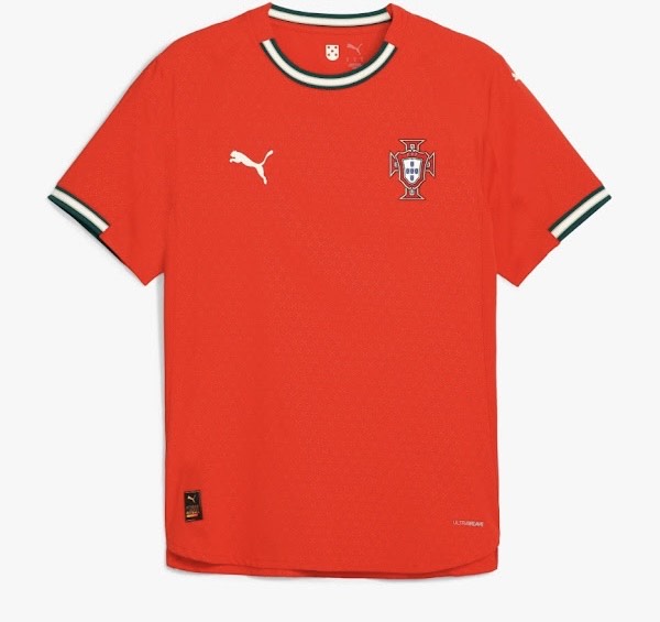 Celebrate Portugal's legacy with the 2025 home jersey, featuring the iconic red and green design. Bold golden accents honor the nation's achievements, while lightweight, breathable fabric ensures peak performance on and off the pitch. A must-have for every passionate fan.