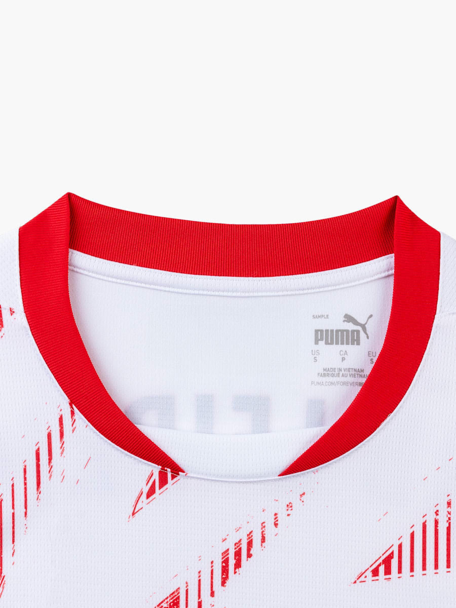 The RB Leipzig 24/25 Home Jersey is a vibrant celebration of the club's dynamic energy, featuring a striking red and white design with a subtle, geometric pattern that symbolizes speed and agility. Made from advanced moisture-wicking material, this jersey provides superior comfort and performance, keeping you cool and dry during intense matches. The classic round neck and tailored fit offer a timeless look, while the iconic Red Bull logo proudly displayed on the chest showcases your unwavering support for the team. Stand out on and off the field with the RB Leipzig 24/25 Home Jersey.