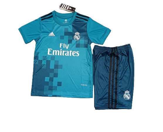 The 17/18 Real Madrid Full Third Kit for youth, available at Champion Gearz, is a timeless tribute to one of the most successful football clubs in the world. This design worn by Real Madrid during the 2017/2018 season, allows young fans to emulate their football heroes in style.