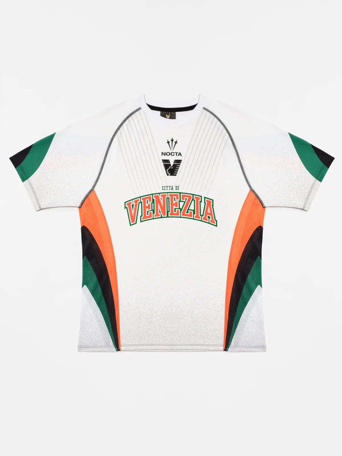 The Venezia 24/25 Away Jersey exudes refined elegance, featuring a crisp white base complemented by the club’s signature orange and green accents. Inspired by the timeless beauty of Venice, the design incorporates subtle patterns that reflect the city’s artistic heritage. The Venezia crest stands out proudly on the chest, while the lightweight, breathable fabric ensures comfort and performance. This jersey is perfect for fans who want to showcase their passion for Venezia with a stylish, contemporary look.
